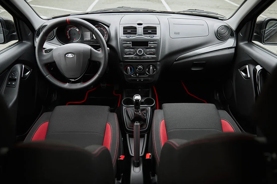 • Бамперы: в цвет кузова с красными вставками