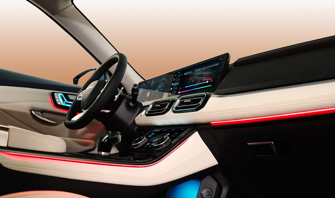 - Подсветка: Многоцветная подсветка салона